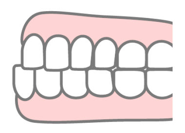 上の歯が下の歯を覆ってしまうほど深く噛んでいる状態をいいます。この状態では下顎の成長を抑えてしまうことや下顎の運動を抑制してしまうことにつながります。また、上下顎の前歯が強く接触してしまうことで歯がすり減ってしまうことや下の前歯が上顎の歯茎に食い込み傷付けることで炎症や痛みの原因となることがあります。