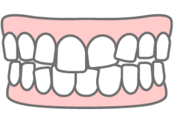 歯の大きさに対して顎の大きさ(歯列弓の長さ)が小さいために歯がデコボコに並んでいたり、重なり合って生えてしまっている状態のことをいいます。日本人に多く見られる症状です。重なって歯が並んでいる状態ですとは歯磨きのときにブラシがしっかりと届きにくく歯垢が残りやすいため、虫歯や歯周病の原因になります。